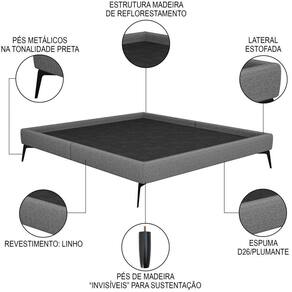 A Cama Casal King com Cabeceira 199cm Pés Metálicos Elisa S05 Linho Cinza, da Mpozenato, é uma cama moderna e de design elegante, perfeita para qualquer quarto de casal!