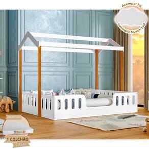 Cama Casal + Kit D28 Casinha Montessoriana Ágatha Branco/amêndoa Incluso Luminária