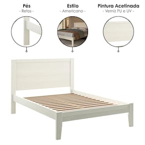 Eleve o momento de descanso com a Cama Casal Topazio, contemporânea e moderna, ideal para o seu momento de repouso. Sua estrutura é composta 100% em Madeira Maciça Taeda (presença calorosa e toque orgânico) com espessura de 16/25 mm (lateral 47 mm), lastros fixos de 25 mm e acabamento em pintura acetinada verniz PU e UV. É composta por painel de cabeceira (16 mm), pés retos e lastro de reforço para apoio (40 mm). Suporta até 200 kg, sendo ideal para colchões tamanho casal com 1,38 X 1,88 cm (COLCHÃO NÃO INCLUSO). Produto será entregue em 04 volumes.