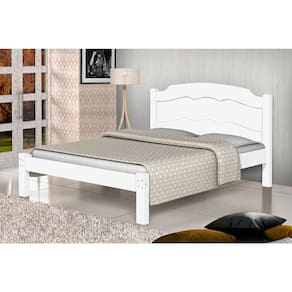 Elaborada 100% em MDF, estrado em madeira, 9 ripas em madeira, 5 travessas em madeira 4,5 x 4,5, lateral em MDF 19 0x 135 x 20 mm, pés cabeceira 10 x 10 pés peseira 10 x 7,5, auto relevo, com 2 pés de apoio central