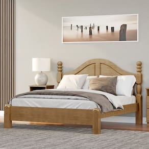 Características: Estrutura em Madeira Maciça de Pinus Pintura Acetinada Verniz PU e UV Pés Torneados em Madeira Maciça Peso Máximo Suportado 220Kg Distribuidos Ideal para colchão de casal de 1,58 x 1,98 Isolamento de Peças com Manta de Polietileno Expandido (Isomanta) *NÃO ACOMPANHA COLCHÃO*