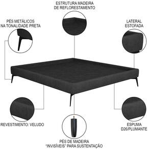 A Cama Casal Queen com Cabeceira 165cm Pés Metálicos Elisa S05 Veludo Preto, da Mpozenato, é uma cama moderna e de design elegante, perfeita para qualquer quarto de casal!