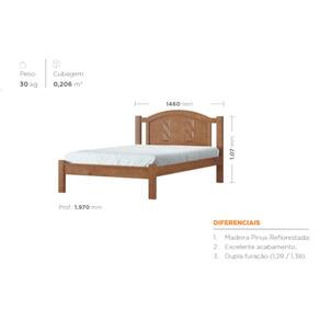 Com um design rústico e elegante, a Cama Casal Grécia é ideal para complementar o ambiente de seu quarto! Suportando até 300kg distribuídos aproximadamente, ela conta com uma estrutura em Madeira de Pinus Reflorestada, acabamento feito em Poliuretano (PU) fosco, que preserva as características da madeira e garante uma ótima conservação e durabilidade do produto. A Cama Casal Grécia possui dupla furação, ou seja, pode ser montada de forma que comporte colchões de 128cm ou 138cm de largura, você é quem decide conforme sua necessidade! Este móvel é perfeito para você! Medidas Alt. 1.070 mm Larg. 1.460 mm Prof. 1.970 mm Peso 30 kg Cubagem 0,206 m3 Peso suportado aproximadamente de 300kg distribuídos, ou seja, 150kg de cada lado. Diferenciais Madeira Pinus Reflorestada; Dupla furação (para colchões de 128cm ou 138cm de largura) acabamento feito em Poliuretano (PU) fosco Atenção! - Não acompanha os colchões. - Confira as dimensões deste produto e certifique-se de que passará normalmente por supostos elevadores, portas, escadas e/ou corredores de sua moradia; - As imagens são ilustrativas, eletrodomésticos e demais objetos que compõem o cenário, não fazem parte do anúncio; - Sobre a tonalidade das cores, poderá ocorrer alterações conforme a configuração do seu monitor. - Orientamos que a montagem e instalações do produto seja realizado por um técnico de sua confiança, após a sua entrega. - Oferecemos retirada em nossa loja Saimys Móveis na Av. Ragueb Chohfi, °3411 (08341-420) para não haver custo de envio.