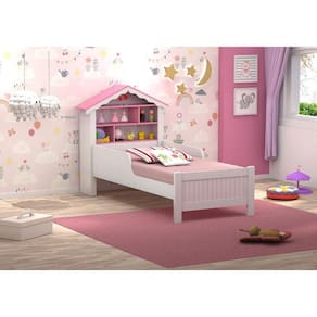 A Casinha é feita em um design totalmente moderno e exclusivo, com cabeceira em formato de casa e prateleiras em MDP para acomodar objetos.