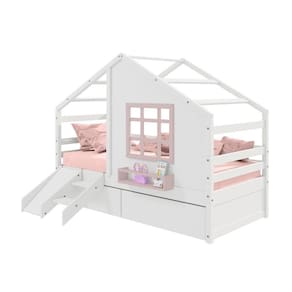 Diferenciais: 02 Gavetas, Kit Escada/ Escorregador, Casinha com fechamento em MDF, Janela e Prateleira para Livros e Decoração, Montagem Reversível (Lado Direito ou Lado Esquerdo)