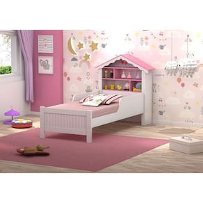 Cama Solteiro Casa Princesa Branco Rosa Vitamov