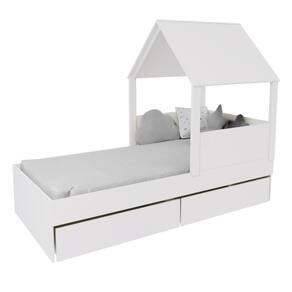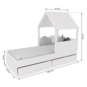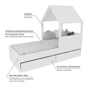 Diferenciais: MDF Melamina 15mm, Estrados em Madeira Maciça, 02 Gavetas com Rodízios, Casinha com Telhado.