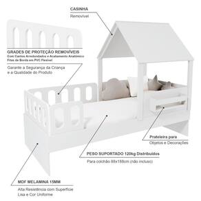 Diferenciais: MDF Melamina 15mm, Estrados em Madeira Maciça, Casinha com Telhado, Grades Anatômicas (Todas as Grades são Removíveis).