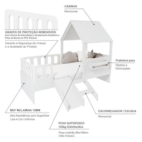Material Principal: MDF | Cor Predominante: Branco | Necessita Montagem: Sim | Acompanha Colchão: Não | Tipo de Cama: Solteiro | Cor: Branco