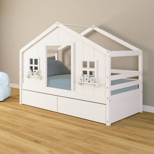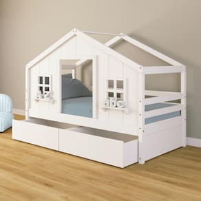 Diferenciais: Casinha com fechamento em MDF, 02 Janelas e Prateleira para Decoração, 02 Gavetas com Rodízios.