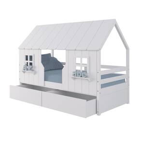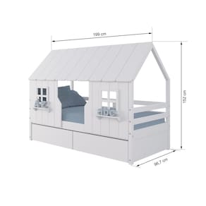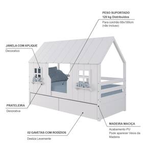 Diferenciais: Casinha e Telhado com fechamento em MDF, 02 Janelas e Prateleira Decorativa e 02 Gavetas com Rodízios.
