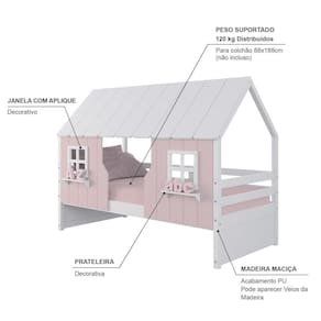 Material Principal: Madeira Maciça | Cor Predominante: Rosa/ Branco | Necessita Montagem: Sim | Acompanha Colchão: Não | Tipo de Cama: Solteiro | Altura: 152 | Largura: 96,7 | Comprimento: 199 | Peso: 54 | Peso máximo suportado: 120 | Cor Via: Rosa/ Branco | Peso com Embalagem: 54 | Comprimento com Embalagem: 192 | Largura com Embalagem: 30 | Altura com Embalagem: 30 | Tamanho da Cama: Solteiro | Descrição do Tamanho: Solteiro | Quantidade de Caixas: 03