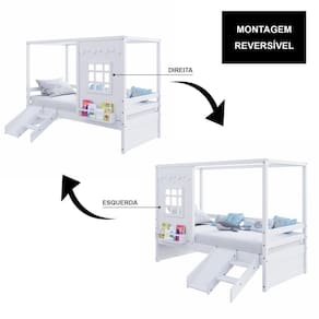 Diferenciais: Kit Escada/ Escorregador, Casinha com fechamento em MDF, Janela e Prateleira para Livros e Decoração, Montagem Reversível (Lado Direito ou Lado Esquerdo)