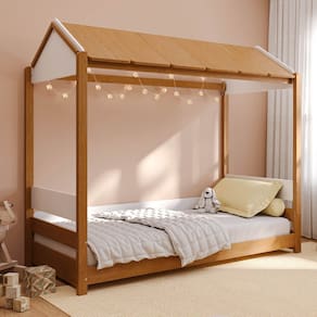 A Cama Casinha Solteiro Reversível Aria Casatema MadeiraOriginals é a materialização da liberdade de crescer, transformando o quarto em um universo de descobertas e aconchego. Nascida do encontro entre o design natural e a funcionalidade, esta peça é uma verdadeira casa de sonhos, que acompanha a evolução da criança. Sua estrutura 100% em madeira maciça de pinus com acabamento em verniz fosco nogueira e detalhes em MDF laqueado branco assegura a robustez e a Segurança Prioritária que tranquilizam os pais, sendo um investimento em Qualidade e Durabilidade. O grande diferencial é sua característica reversível: ela pode ser montada na altura montessoriana baixa, incentivando a autonomia desde cedo, ou na altura tradicional, conforme a criança cresce. Este Toque de Sofisticação e Aconchego, com seus contornos suaves e toque artesanal, garante que o quarto deixe de ser apenas um lugar de dormir e se torne um refúgio acolhedor, onde a poesia do design convida a brincar e sonhar com leveza. Acompanha Cama Auxiliar: Não Acompanha Colchão: Não Altura do Estrado até o Chão: 30,5 cm Ambiente Principal: Quarto Infantil codigo_ean: 7900288269287 Complexidade da Montagem: Média: pode ser montado por mais de uma pessoa e/ou necessite de maior conhecimento para montagem Cor: Nogueira/Branco Cor do Produto: Nogueira/Branco Escala de Brilho: Semi-Fosco Itens Inclusos: 1 Cama Casinha, Manual de Montagem e Kit Ferragens Linha ou Coleção: Aria Manual de Montagem e Instalação: https://product-hub-prd.madeiramadeira.com.br/927551923/documents/50e92e3f-9e0d-44dc-8438-ce4fb80e260c3288854338717611598171864.pdf Marca: Casatema Material do Estrado: Madeira Maciça Material Principal: Madeira Maciça modular: Não Montagem Flex: Pode ser montado como cama padrão ou montessoriana Necessita Montagem: Sim Origem do Produto: Nacional Permite a Utilização de Cama Auxiliar: Sim Peso: 58,5 kg Possui Baú: Não Possui Gavetas: Não Possui Pés: Não Possui Portas: Não Possui Prateleiras: Não Possui Telhado: Sim Recomendações de Uso, Manutenção e Limpeza: Na limpeza não utilizar produtos químicos e abrasivos, usar apenas um pano umedecido, para garantir a maior durabilidade do móvel. Sistema de Montagem: Parafusos, cavilhas e porcas Suporta Até (kg): 100 kg Tamanho do Colchão Indicado (L x C): 188cm x 88cm Tipo de Cama: Cama Casinha Tipo de Colchão: Solteiro Tipo de Estrado: Fixo Tipo de Grade de Proteção: Grade Tipo de Madeira Maciça: Pinus