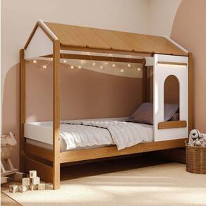 1x Cama Casinha Solteiro Reversível Aria Madeiraoriginals Nogueira/Branco Largura: 96 cm Altura: 180 cm Peso: 58,5 kg Profundidade: 202 cm Necessita Montagem: Sim