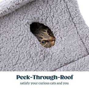 - Peek-Through-Roof – A caverna de cama de gato é ideal para mais diversão, oferece um olho mágico fofo no telhado, satisfaz seus gatos curiosos com ela, seu bebê de pelo pode dar uma olhada em quem está se aproximando de seu território privado ou estender suas mãozinhas para interagir com sua família, a cama de gato com capa da Pelzin tem grande apelo para gatinhos e gatos pequenos.