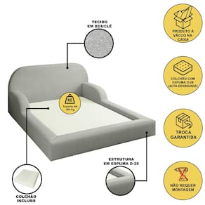 Cama Colchão Casal Montessoriana Infantil Proteção Lateral - Cinza Claro