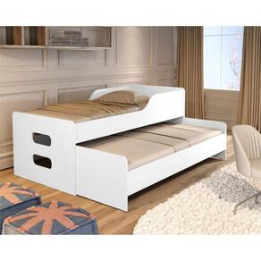 A cama auxiliar fica embaixo da principal e basta puxá-la por meio das corrediças para começar a fazer uso dela.