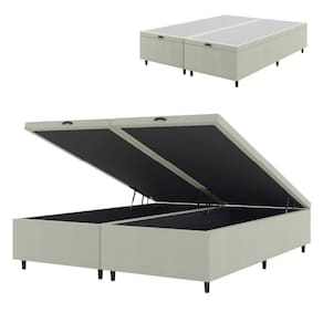 Cama Com Baú King 1,93m Prince Suede Bege Bege