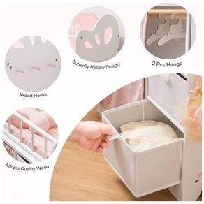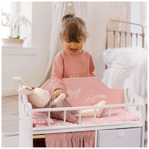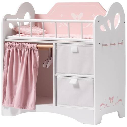 Montagem Facilitada: Nosso berço de boneca pode ser montado facilmente por uma pessoa, poupando tempo e esforço. Não são necessárias ferramentas complicadas! Construção Durável: Feito inteiramente de madeira, nosso berço de boneca oferece resistência e durabilidade superiores em comparação com alternativas de plástico, garantindo anos de uso confiável. Amplo Armazenamento: Nosso conjunto de berço de boneca inclui um guarda-roupa para bonecas, duas gavetas e três ganchos, oferecendo muito espaço para organizar todos os acessórios das bonecas de forma organizada. Design Encantador: Nosso berço de boneca combina perfeitamente funcionalidade com estética. A paleta de cores quentes e os padrões encantadores de borboletas criam uma atmosfera mágica, ideal para estimular o jogo imaginativo. Design Espaçoso: Com dimensões de 55,88cm x 27,94cm x 58,42cm, nossos berços de boneca oferecem muito espaço para que as bonecas de até 56cm descansem confortavelmente.