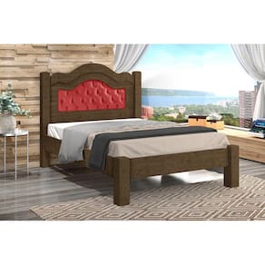 Cama de Casal Ligia Luke Móveis Ipê com detalhe em sued vermelho
