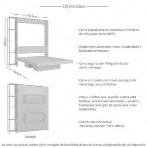 Articulável com travas seguras, ela economiza espaço e, ainda, conta com 2 nichos decorativos que se tornam pés de apoio ao abrir a cama, garantindo maior estabilidade para suas noites de descanso.