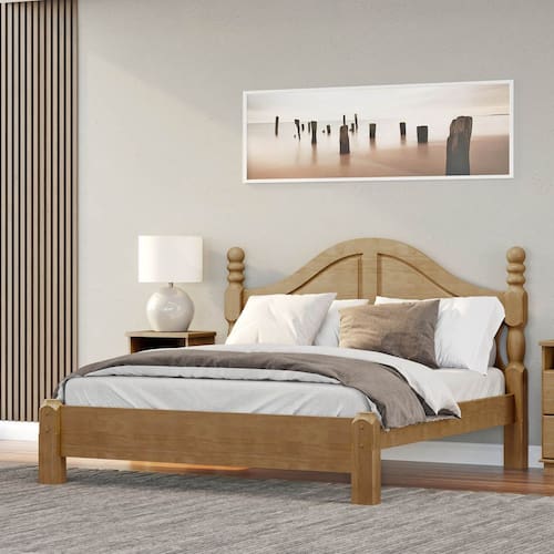 Cama de Casal Clássica 208cm x 152,5cm Ouro Freijo Madeira Pinus - Finestra