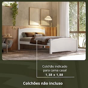 Material resistente: Madeira maciça de Pinus e MDF de 2,2 cm. Design elegante: Pintura PU e UV branca, moderna e de fácil manutenção. Alta capacidade: Suporta até 240 kg. Tamanho ideal: Compatível com colchão de 188x138 cm (não incluso).