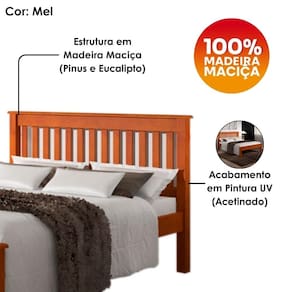 A Cama de Casal 707LA a união entre o clássico e funcional, acrescentando personalidade ao seu quarto! Com estrutura 100% em Madeira Maciça de Pinus (sendo os lastros em Madeira de Eucalipto) e acabamento UV acetinado. Composta por cama reforçada, suportando até 180kg, ideal e indicada para colchões de 188x138 cm. NÃO ACOMPANHA COLCHÃO NEM DEMAIS DECORAÇÕES. Produto será entregue em 4 volumes.