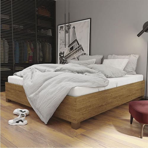 Cama De Casal Paula Carioca Móveis Cinamomo A Cama Casal com 1,93 de comprimento e 1,44m de largura e a melhor opcao para trazer conforto e elegancia ao seu quarto. Produzida em MDP, com estrado de madeira reflorestada e pes de PVC garante durabilidade e resistencia ao movel. Acabamento resistente com impressao UV e verniz de alta duracao. Ideal para colchoes de 1380mm. Nao acompanha o colchao. e resistencia ao movel. Acabamento resistente com impressao UV e verniz de alta duracao. Caracteristicas Gerais: Material de Estrutura: MDP Material dos Pes: PVC Acabamento: Impressao UV Tamanho: Casal (Nao Acompanha Colchao)