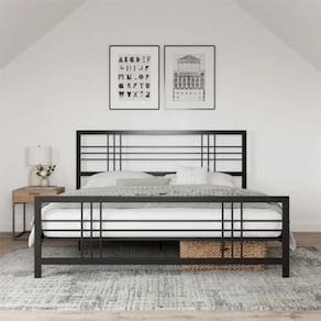 A cama de casal estilo industrial MOBBILI é uma ótima escolha para quem busca um visual moderno e urbano para o quarto.