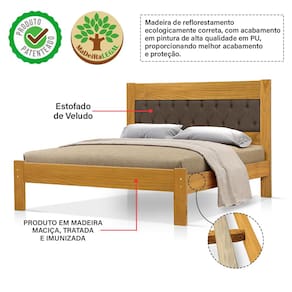Cama de Casal Viena com Cabeceira Captonê Veludo Marrom Madeira Imbuia