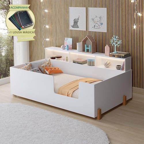 A Madeira Store desenvolveu a Cama Douçura para o bem estar do seu filho, para utilizar de forma confortável, segura e com autonomia. Contando ainda com alguns compartimentos para manter o quarto do seu filho organizado.Tipo: Cama InfantilModelo: DoçuraCor: BrancoAcompanha NichoAcompanha LEDAcompanha lousa mágica (Produto Ecológico, Salva 3 Árvores, para o Desenvolvimento, Botão para Limpar, Bateria Média 2 Anos)Não acompanha colchãoColchão indicado: 150cm x 70cmMedidas Cama:Altura: 64cmLargura: 153cmComprimento: 85cmATENÇÃOIMAGENS MERAMENTE ILUSTRATIVAS REALIZADO EDIÇÃO, PODENDO HAVER UMA PEQUENA VARIAÇÃO DE COR DEPENDENDO DE CADA TELA OU MONITOR.