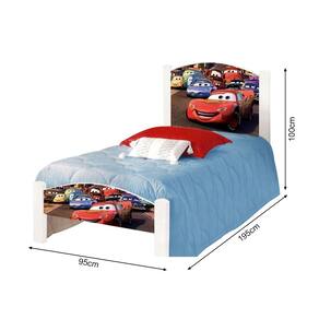 Cama de Criança Solteiro Infantil Adesivada Carro com Grade de Proteção - Branco