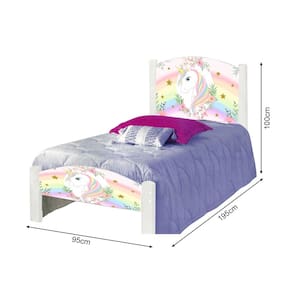 Cama de Criança Solteiro Infantil Adesivada Unicónio com Grade de Proteção - Branco
