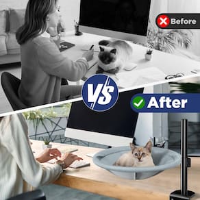 - [Adapta-se à maioria das espessuras de mesa]: esta cama de gato para mesa compatível com mesas de até 12 cm de espessura, possui uma base antiderrapante segura que a mantém firmemente no lugar enquanto protege sua superfície, tornando-a a escolha ideal para donos de animais de estimação que desejam manter seus companheiros felinos próximos, confortáveis e satisfeitos.