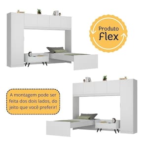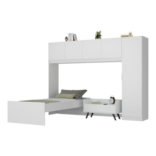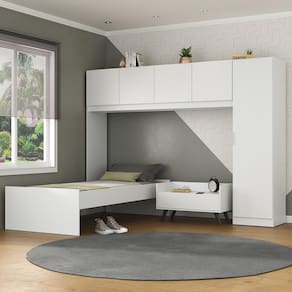 A Cama de Solteiro com Guarda-Roupas e Mesa de Cabeceira Retrô Dublin Multimóveis MP4033 é uma opção com excelente custo-benefício para deixar seu quarto completo. Produzidos em MDP, que garante maior durabilidade e resistência, possuem acabamento acetinado (cerca de 20% de brilho). Compacto e versátil, o guarda-roupas pode ser montado de ambos os lados (com a porta do lado direito ou esquerdo), possui 4 portas, 1 porta lateral, cabideiro em madeira e 3 prateleiras internas, comamplo espaço internopara organizar seus pertences. A mesa de cabeceira possui 1 gaveta com corrediças metálicas (mais leveza no manuseio) e pés estilo retrô em polipropileno que dão um charme especial ao móvel e um visual leve. A cama de solteiro NÃO acompanha colchão (tamanho de colchão indicado: 188 x 88 cm) e suporta até 90 kg.