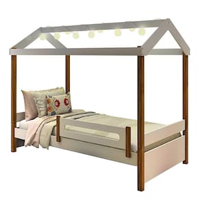 A cama vêm no formato de casinha, fazendo da parte superior um telhadinho..
