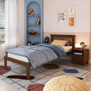Cama de Solteiro de Madeira Maciça para Colchão 88x188cm Multimóveis CR35274 - Marrom Escuro
