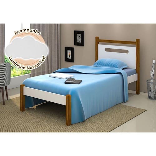 Cama De Solteiro Design Eloa Branco Com Amêndoa Acompanha Luminária Led - Cor: Branco