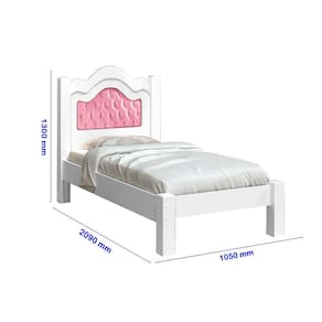 Cama de Solteiro Ligia Luke Móveis Branco com detalhe em sued rose
