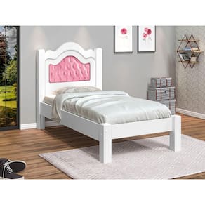 Cama de Solteiro Ligia Luke Móveis Branco com detalhe em sued rose