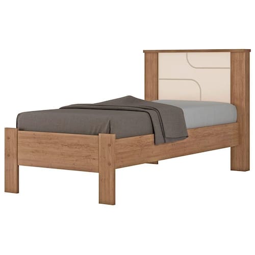 Cama De Solteiro Pérola Conquista Móveis Amêndoa/off White