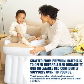 Esta cama infantil para crianças de avião é a maneira perfeita de dar ao seu filho um lugar confortável e conveniente para descansar e relaxar durante voos longos. Nossa cama de avião infantil é feita de PVC durável e ecológico que é fácil de inflar e esvaziar para máxima conveniência. A cama inflável de viagem para crianças vem com um travesseiro embutido e dois bolsos laterais para armazenar itens pequenos, como um telefone ou uma carteira. Esta cama de viagem é projetada para caber entre a maioria dos assentos de avião, tornando-a a maneira perfeita de garantir que seu filho tenha espaço suficiente para se esticar e relaxar durante voos longos. Nossa cama inflável de viagem infantil é projetada com segurança em mente, apresentando um amortecedor inflável em ambos os lados para proteger seu filho durante turbulência ou enquanto ele dorme. A cama de avião infantil também está equipada com um fundo antiderrapante para evitar que deslize durante a turbulência. A cama também possui um extensor de assento de avião para crianças, permitindo que seu filho se sente com segurança em seu assento durante um longo voo. É a melhor ideia de presente de viagem. - A cama inflável para crianças que viajam proporcionará ao seu bebê o lugar mais confortável durante o voo, que qualquer adulto invejaria - O tamanho da cama infantil para crianças pequenas é feito para caber na maioria dos assentos de avião, com um espaçamento máximo de 78,7 cm entre assentos e uma largura de assento de 50,8 cm - As bordas laterais altas da cama de avião infantil e o cinto de segurança especial incluído no conjunto garantirão a máxima proteção para o seu bebê durante o voo - Incluímos uma bomba que infla rápida e facilmente o avião da cama de viagem da criança em apenas alguns minutos, e o design especial da válvula permite esvaziar em apenas alguns segundos - A cama inflável para crianças foi projetada especificamente para uso em carros e aviões, mas também pode proporcionar um descanso confortável para seu filho em outros modos de transporte
