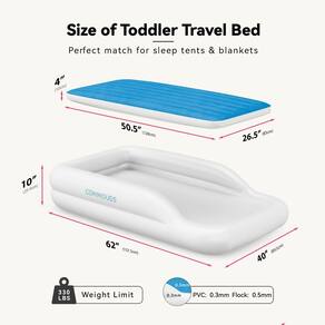 - Colchão interno removível para facilitar a limpeza e personalização: possui um colchão inflável removível que se encaixa na maioria dos lençóis e cobertores infantis, permitindo que você personalize o ambiente de sono do seu filho. O design separado também torna a limpeza simples e sem complicações, garantindo sempre uma cama higiênica e fresca