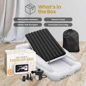 Na Eltow, entendemos que viajar com crianças pequenas pode ser um desafio, especialmente quando se trata de arranjos para dormir. É por isso que apresentamos a você nossa cama inflável de viagem infantil com amortecedores de segurança, uma solução confiável e fácil de usar para os pais em movimento. Nossa cama portátil inflável para crianças vem com uma bomba de alta velocidade, bolsa de transporte e kit de reparo para maior conveniência, tornando-a a solução perfeita para viagens, festas do pijama, acampamento e estadias em hotel. Projetado com segurança em mente, este colchão de ar infantil com laterais oferece proteção extra para pessoas que dormem ativas, garantindo que seu filho fique confortável e seguro durante toda a noite. A superfície de veludo macio e felpudo e o design do colchão de 8 seções fornecem uma superfície confortável para o seu filho, enquanto a camada de vinil resistente a perfurações garante que a cama inflável da criança seja durável e duradoura. Limpeza e manutenção são fáceis graças ao colchão removível, para que seu filho possa desfrutar desta cama infantil de viagem por muitos anos. Esta cama portátil para crianças infla em segundos, facilitando o uso e economizando tempo e complicações. Se você estiver saindo de férias em família ou fazendo uma festa do pijama, esta cama inflável de viagem infantil é a solução perfeita para as necessidades de sono do seu filho. Confie na ELTOW para fornecer a você uma cama inflável de alta qualidade e confiável para crianças. Invista na cama inflável de viagem infantil ELTOW com amortecedores de segurança hoje e desfrute de paz de espírito sabendo que seu filho terá um lugar confortável e seguro para dormir, não importa onde suas viagens o levarem. - Sono sereno em movimento: este colchão inflável infantil com laterais tem tudo o que seu filho precisa para viajar, acampar ou ficar na casa dos avós. Inclui uma bomba de alta velocidade, 2 adesivos de reparo rápido e uma bolsa de transporte conveniente para facilitar o transporte - Superfície macia de veludo de pelúcia: Projetada para conforto, esta cama infantil inflável possui uma superfície de veludo macio e um design de colchão de 8 seções. O colchão é removível, permitindo fácil colocar o lençol neste colchão de ar portátil para crianças - Laterais de para-choque de segurança: garanta que o seu pequeno durma com segurança com as laterais embutidas do para-choque de segurança, evitando quedas acidentais. Este colchão de ar infantil oferece maior tranquilidade para os pais, garantindo um sono seguro para crianças pequenas - Inflar/esvaziar em segundos: com a bomba de alta velocidade incluída, esta cama inflável para crianças infla ou esvazia em segundos, tornando-a rápida e sem esforço de montar. Quando inflada, a cama mede 160 x 101 x 30 cm, perfeita para viagens - Feita para durar: Feita de materiais de alta qualidade, esta cama infantil inflável é projetada para durabilidade, oferecendo conforto e segurança de longa duração para seu filho em todas as suas aventuras