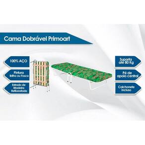 Cama Dobrável em Aço Tubular c/ Colchonete - Branco