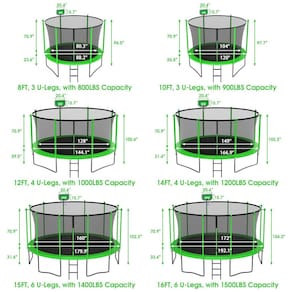 Trampolim de capacidade de carga de 700 kg O conjunto de trampolim LHX de 4 m com cesta de basquete inclui 1 luz de trampolim, 1 spinkler de trampolim, 4 âncoras de estaca galvanizadas, 1 bola e um inflador. O trampolim LHX com capacidade de 700 kg pode acomodar de 8 a 9 crianças ou 3 adultos. A superfície de salto de polipropileno padrão do trampolim resistente ao ar livre de 4 m fornece força de rebote incomparável e os tapetes são testados por até 5.000 horas e podem suportar até 700 kg. Molas galvanizadas e rede de proteção O trampolim LHX de 15 pés é equipado com 96 molas galvanizadas de superdimensionadas, que têm fortes capacidades de tração e rebote, bom amortecimento, permitindo que o trampolim suporte grandes cargas. A rede de trampolim de 4 m é feita de malha tecida à prova de sol de alta densidade com tapete de salto PP anti UV de alta densidade sem folga anexada, que não apenas protege a segurança do saltador, mas também evita a luz solar durante o salto. Estrutura de 1, de espessura atualizada O trampolim LHX de 4 m é feito de tubos de aço galvanizado de 1, de espessura, resistente à ferrugem e à corrosão, tornando o trampolim mais resistente e durável. Comparado com outros, o trampolim LHX 15 pés é equipado com 12 conectores em forma de T espessos para reforçar 6 tubos de perna em forma de U e possui 12 pólos de proteção para criar 12 pontos de força de estrutura, para garantir que cada tubo de perna do trampolim seja tensionado uniformemente e estabilize o trampolim, 100 estável em tempo ventoso e chuvoso. Fácil de instalar LHX fornece manual de instalação gráfico e guia de instalação de vídeo, apenas 2 pessoas podem Configuração rápida e fácil de montar em 1,5 horas, sem pagar pelo serviço de montagem adicional. Todos os trampolins LHX são aprovados pela ASTM F381, F2225, D638 e AATCC 169 Standard Safety Specification