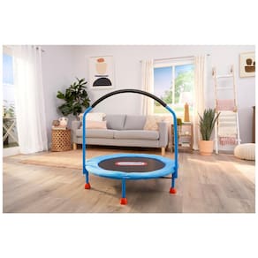 Trampolim perfeito para as crianças queimarem energia Possui grande superfície de salto e guidão para estabilidade Combinação de plástico e metal Trampolim é apenas para uso interno. Idade 3 a 6 anos. Aterramento para o topo do guidão . Superfície de salto para o topo do guidão Marca: Não Informado