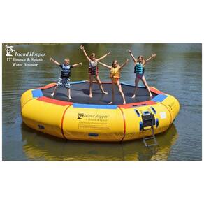 Cama elástica de nylon entrelaçado sem molas Material PVC reforçado de 1.000 deniers para serviço pesado Acolchoamento de perímetro de espuma protetora de Dimensões do produto inflado 5 metros de diâmetro x 91 centímetros de altura. Superfície de salto de 4 metros de diâmetro Marca: Não Informado
